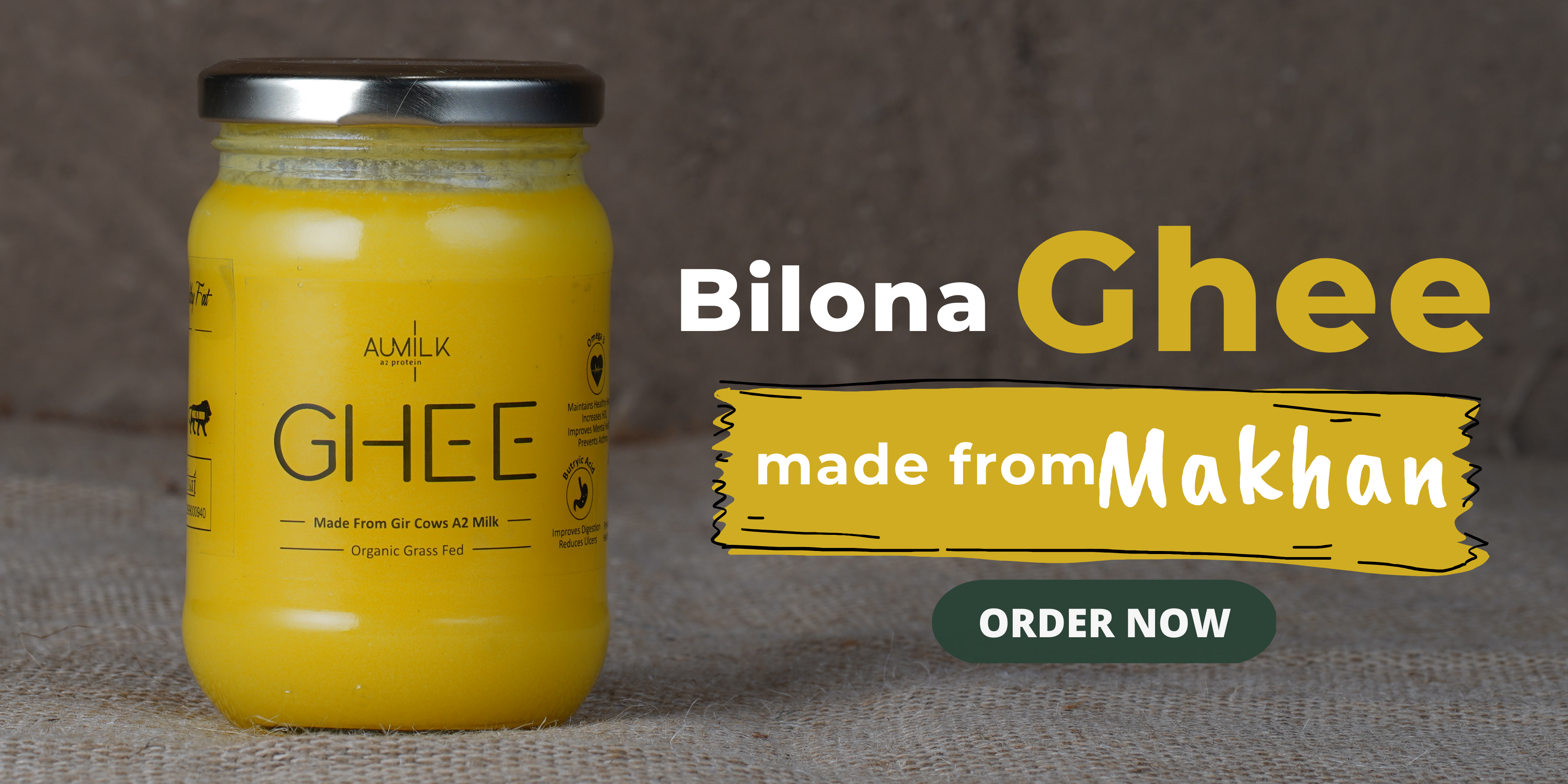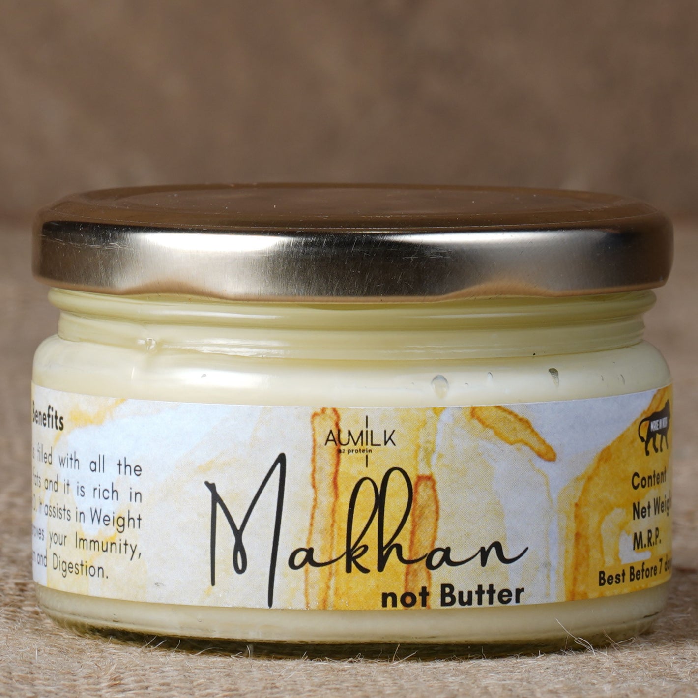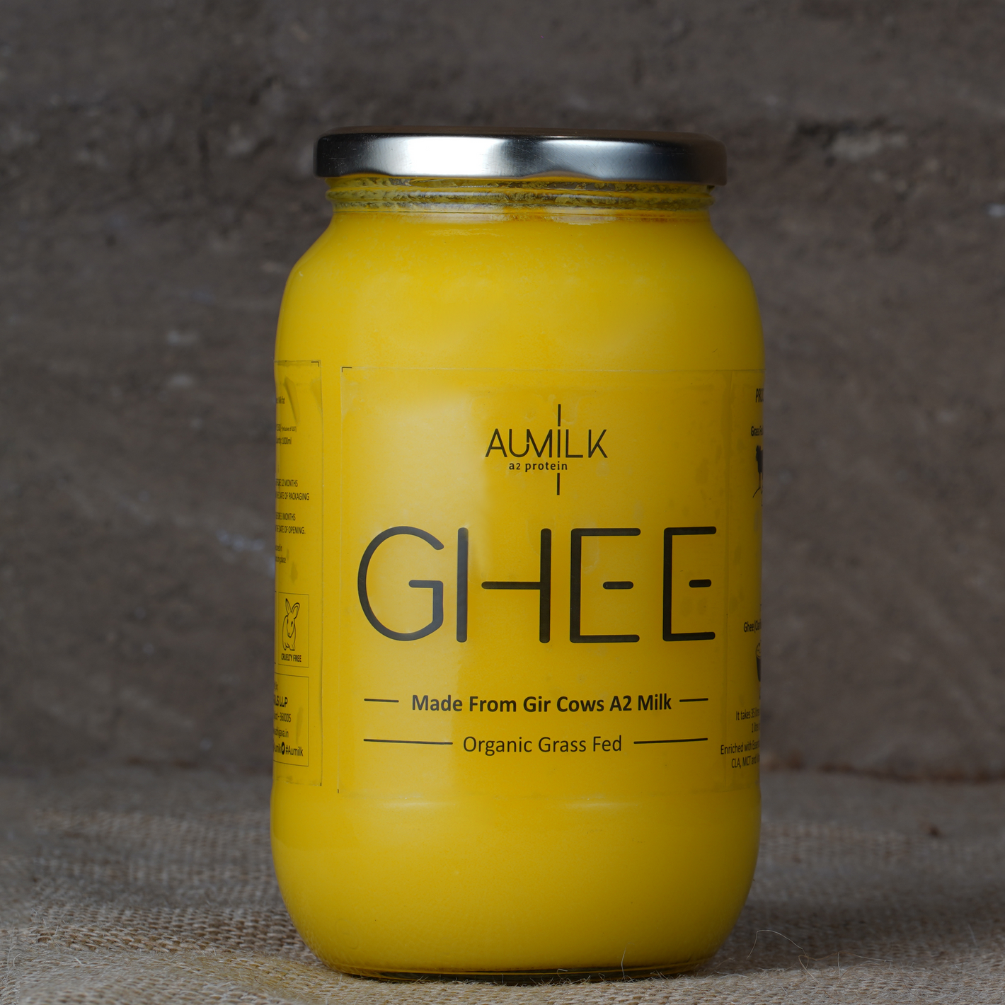 Aumilk Bilona Ghee is made from Raw A2 Milk of pure bred Gir Cows. These cows graze in vast green pastures throughout the year making the Milk and Ghee highly nutritious.